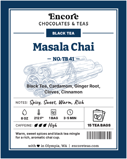 Black Tea, Cardamom, Ginger Root, Cloves, Cinnamon