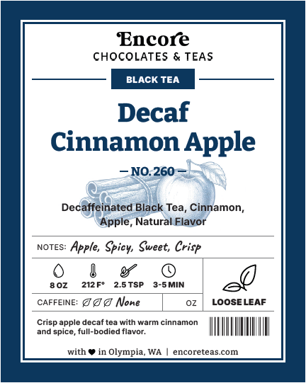 Decaf black tea, Cinnamon, Dried Apples, Natural Flavor
