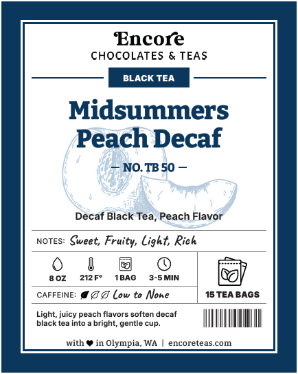 Light, juicy peach flavors soften decaf black tea into a bright, gentle cup.