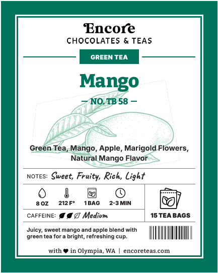 Juicy, sweet mango and apple blend with green tea for a bright, refreshing cup.