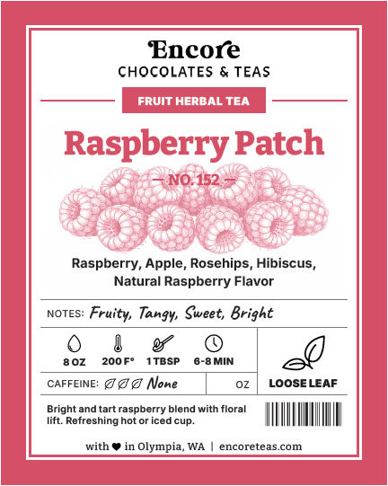 Tart and zesty raspberries mingle with fruit and flowers for a bright, sweet herbal sip.