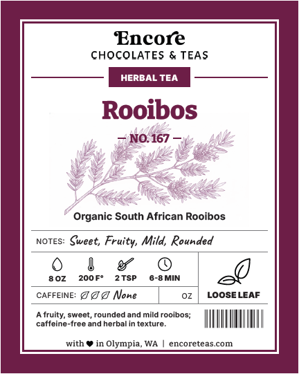Smooth, naturally sweet red rooibos offers a fruity, mellow cup without caffeine.