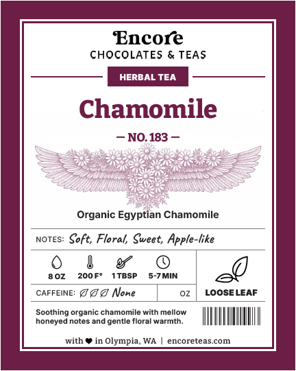 Pure Egyptian chamomile offers a golden cup with earthy, floral notes and calm.