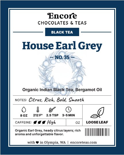 Organic Earl Grey, heady citrus layers; rich aroma and unforgettable flavor.