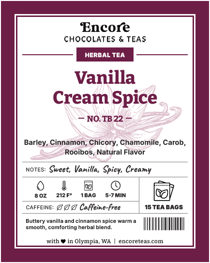 Buttery vanilla and cinnamon spice warm a smooth, comforting herbal blend.