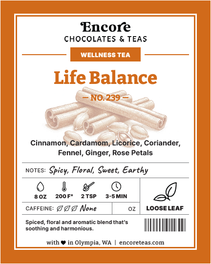 Cinnamon, ginger, and licorice balance a warm, sweet cup to soothe and center